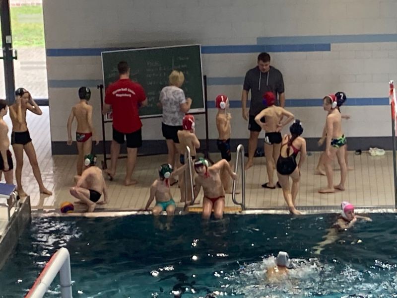 Doch auch die kleinsten Wasserballer des Vereins bereiten sich auf den Wettkampfbetrieb vor. „Die U10 ist unser jüngstes Team. Sie sind zwar noch nicht lange aktiv, spielen aber schon mit großer Begeisterung und sehr viel Elan mit dem Ball. Da funktioniert natürlich noch nicht alles“, meint Hagendorf und ergänzt, „Und genau deshalb haben wir am Samstag, 04.03.2023, in der Magdeburger Dynamo Schwimmhalle eine Trainingseinheit mit den gleichaltrigen Sprösslingen des SC DHfK Leipzig veranstaltet.“ In einem Turnier spielten über 30 kleine Wasserballer und Wasserballerinnen in sechs Teams um Urkunden und den Sieg.“ Insgesamt war es eine intensive und tolle Veranstaltung beider Vereine, die es zu wiederholen gilt. Zum guten Gelingen trugen nicht nur die Aktiven und vielen Helfer der beiden Vereine bei, auch die Eltern zauberten Leckereien für alle Teilnehmer auf den Mittagstisch.